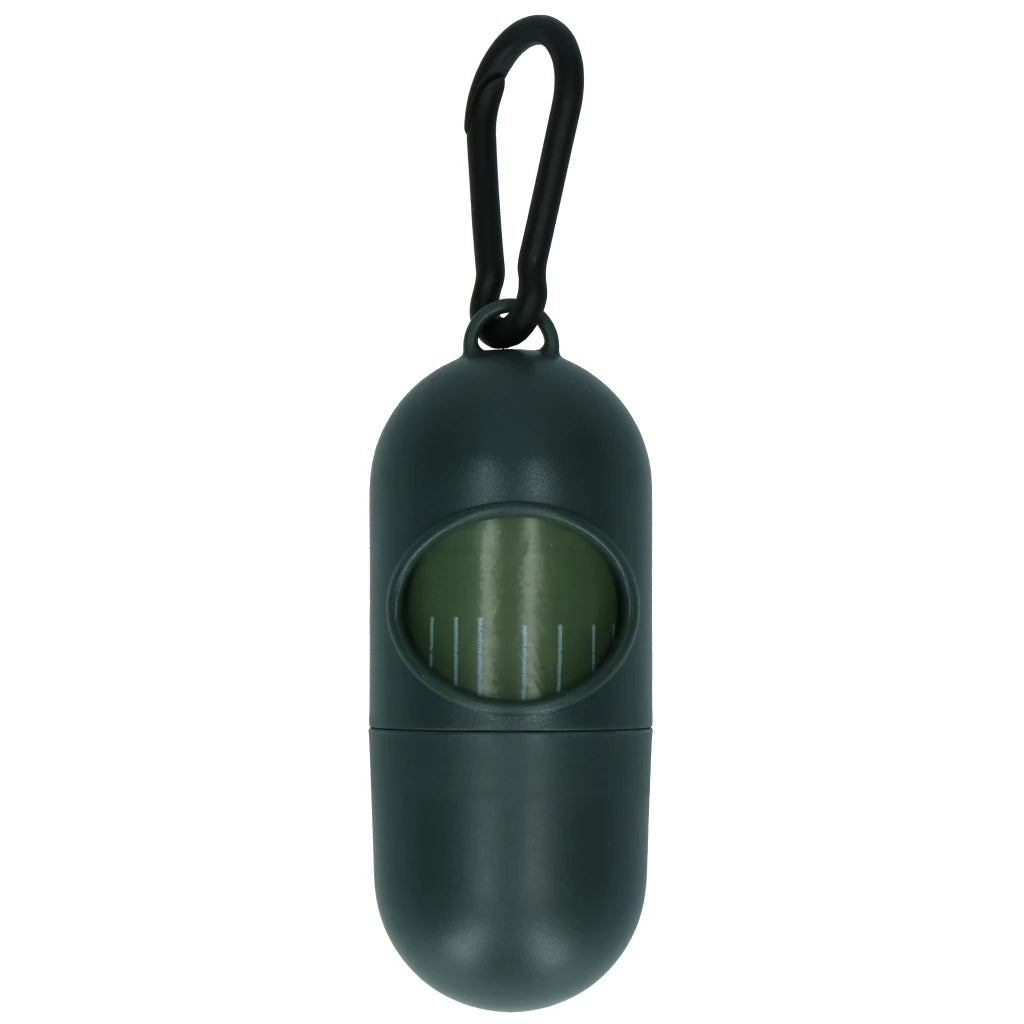 Deze mooie dispenser is gevuld met 1 rolletje (15 zakjes) PoopyGo poepzakjes en is eenvoudig te bevestigen aan de hondenriem.